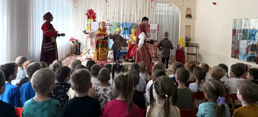 С 7 по 10 апреля три детских сады нашего города наполнились теплом и радостью благодаря выездной программе "Русской печки нет теплее". Эту замечательную программу провела фольклорная студия "Крупеничка", подарив детям незабываемые впечатления. Юные зрители с восторгом погрузились в мир русских народных песен, танцев и игр, ощутив дух старинных традиций. Каждый день программы был наполнен яркими выступлениями и интерактивными моментами, которые никого не оставили равнодушным. Особую благодарность хочется выразить участникам студии "Крупеничка" за их талант и самоотдачу. Мы также сердечно благодарим руководителей студии, режиссера Трофимову Людмилу Валерьевну, и хормейстера Тузову Ларису Ивановну за их неоценимый вклад в организацию и проведение этого чудесного мероприятия. Благодаря их труду и любви к народному творчеству, дети получили возможность прикоснуться к богатству русской культуры